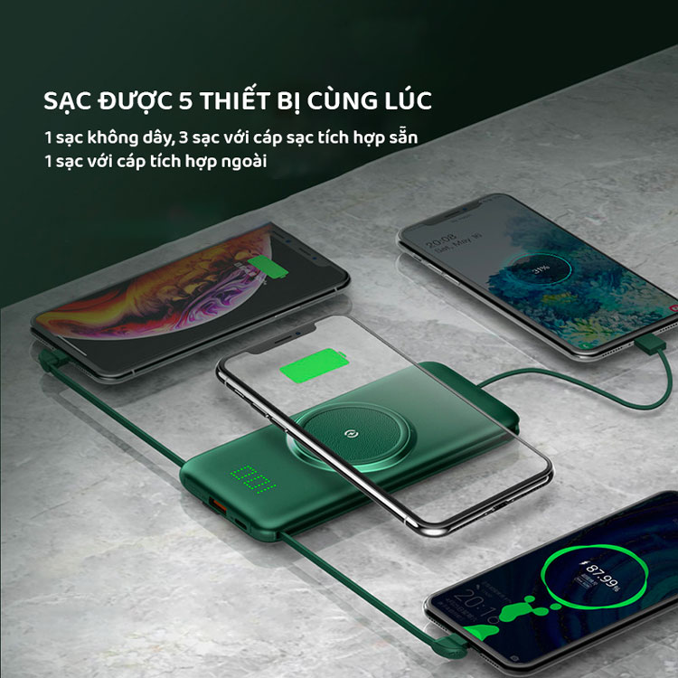 Pin dự phòng không dây đa cổng K6 10000mAh