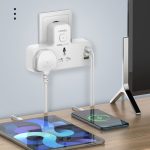 Ổ cắm chia ra làm 2 ổ cắm đa năng và 3 cổng USB để sạc cho điện thoại
