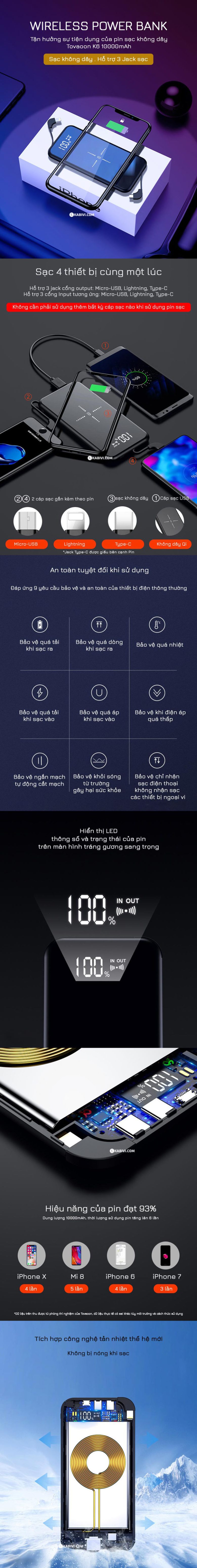 Sử dụng được với tất cả các dòng điện thoại cổng Type-C, Lightning, Micro-USB mà không cần thêm cáp sạc