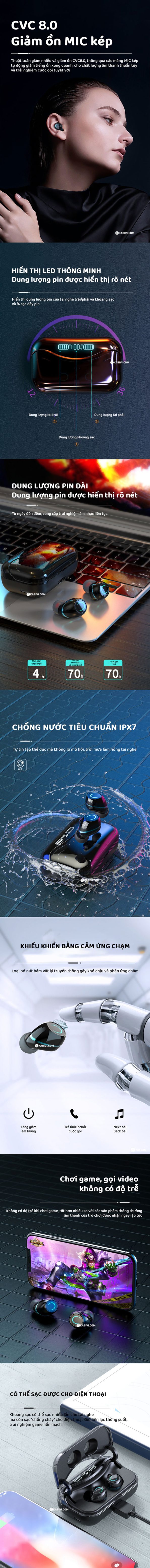 Điều khiển tai nghe bằng cảm ứng chạm: Tăng giảm âm lượng, Nhận/từ chối cuộc gọi, Next/back bài hát