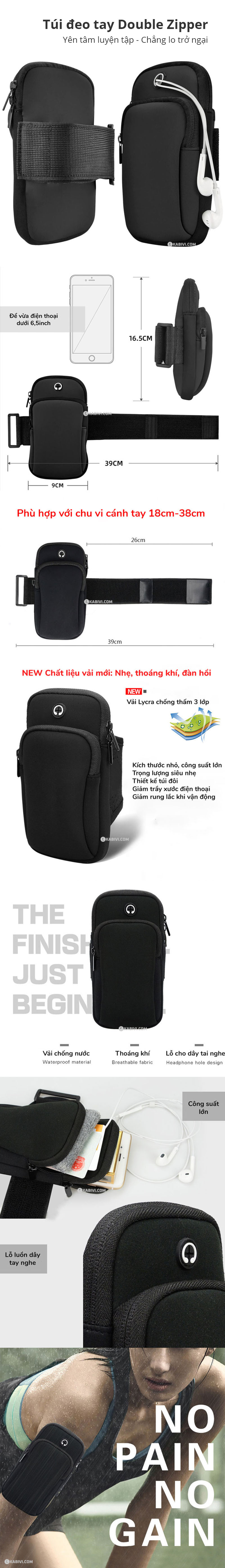 Công suất chứa lớn cho mỗi buổi tập thể dục, được chia làm 2 ngăn riêng biệt: Đựng vừa điện thoại dưới 6.5inch, tiền, thẻ, tai nghe,…